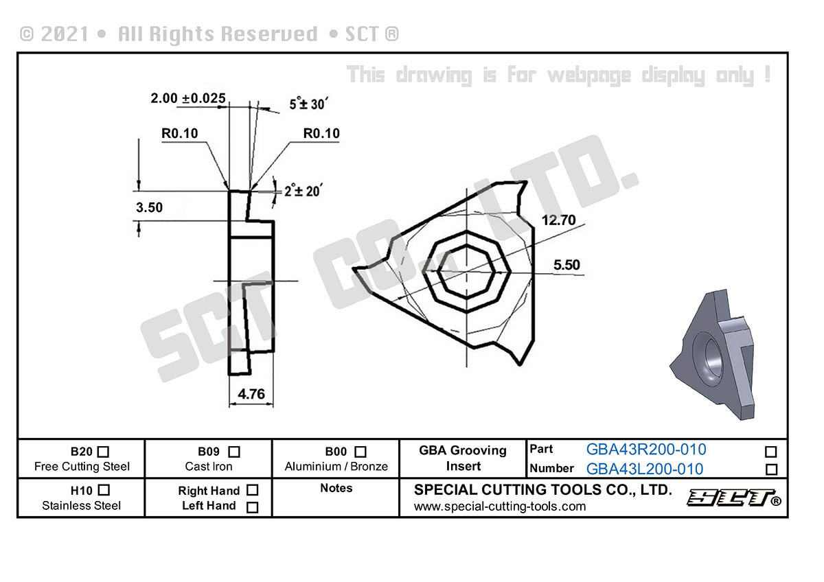 Grooving Tools & Cut-Off Tools - GBA grooving inserts - 3 cutting edges - GBA43R/L200-010